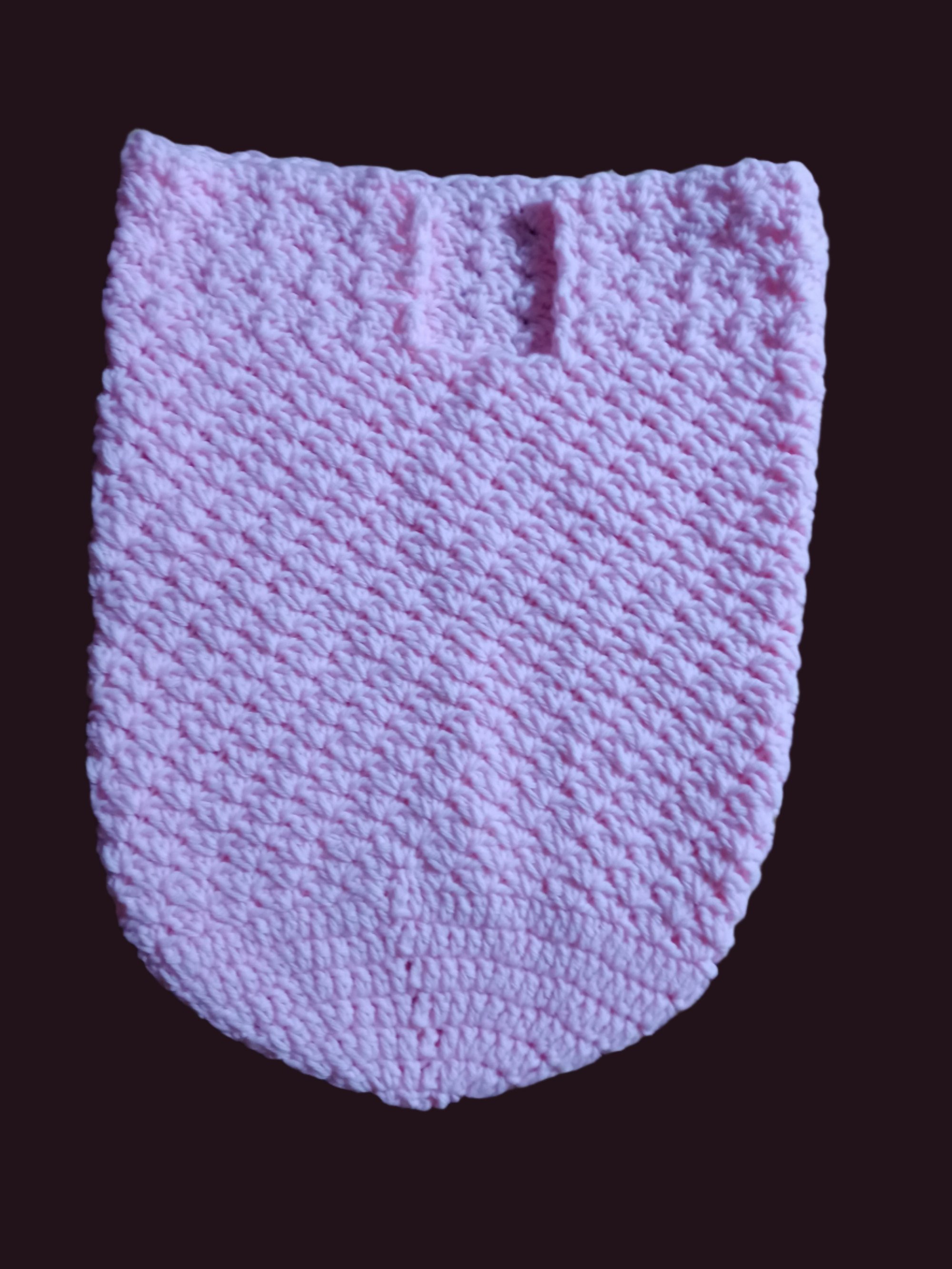 This sweet and cozy Handmade Baby Pink Blanket Cacoon is the perfect addition to your little one's nap time or snuggles. Made with love and care, it measures 17 inches by 13 inches and keeps feet toasty. Give your bundle of joy the ultimate cozy companion!