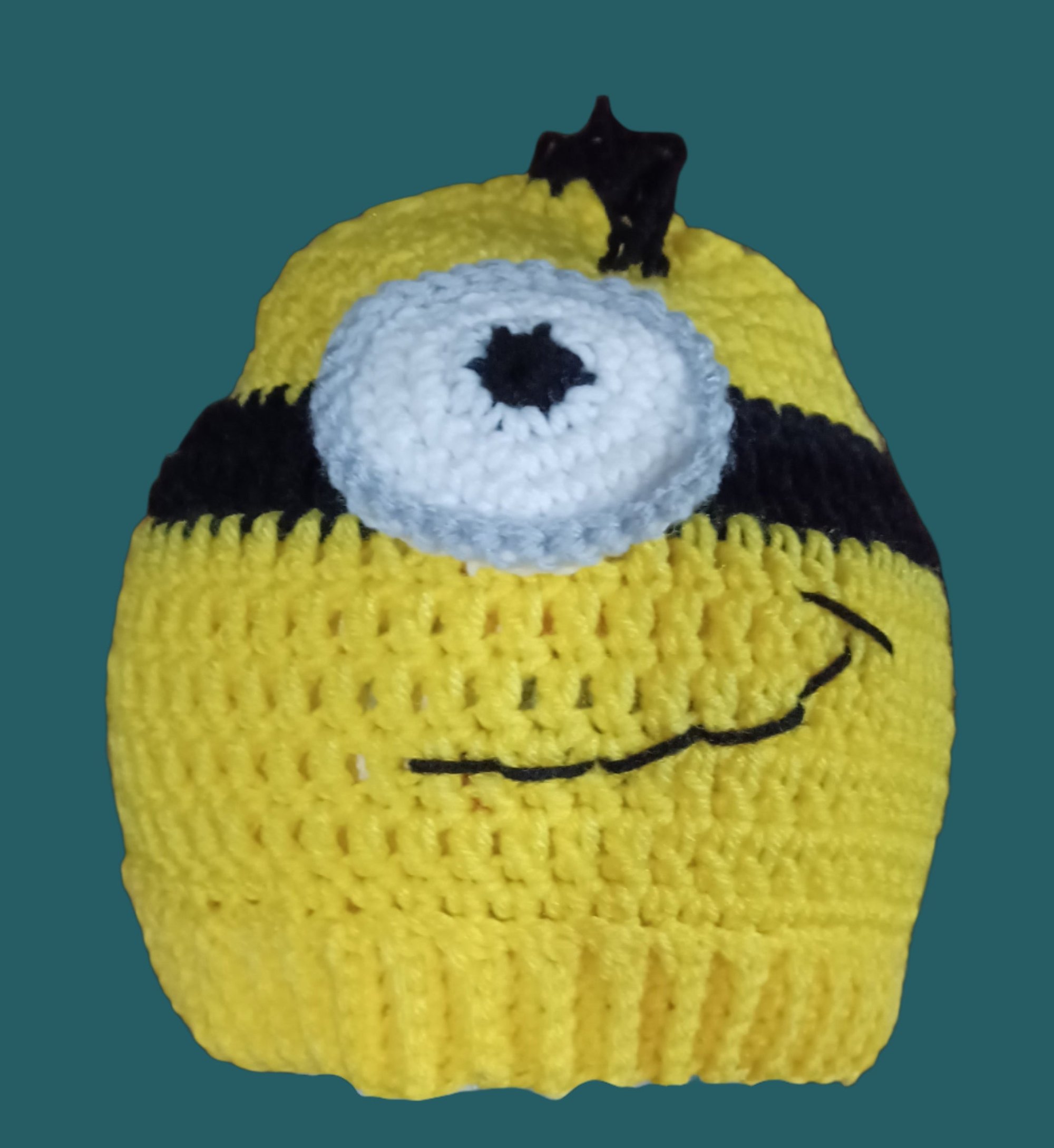 This adorable Minion face crochet hat is a must-have for any child! Its bright yellow color makes it easy to spot, and its cozy design will keep your little one's ears toasty warm. Perfect for any adventure, this hat is both fun and functional.