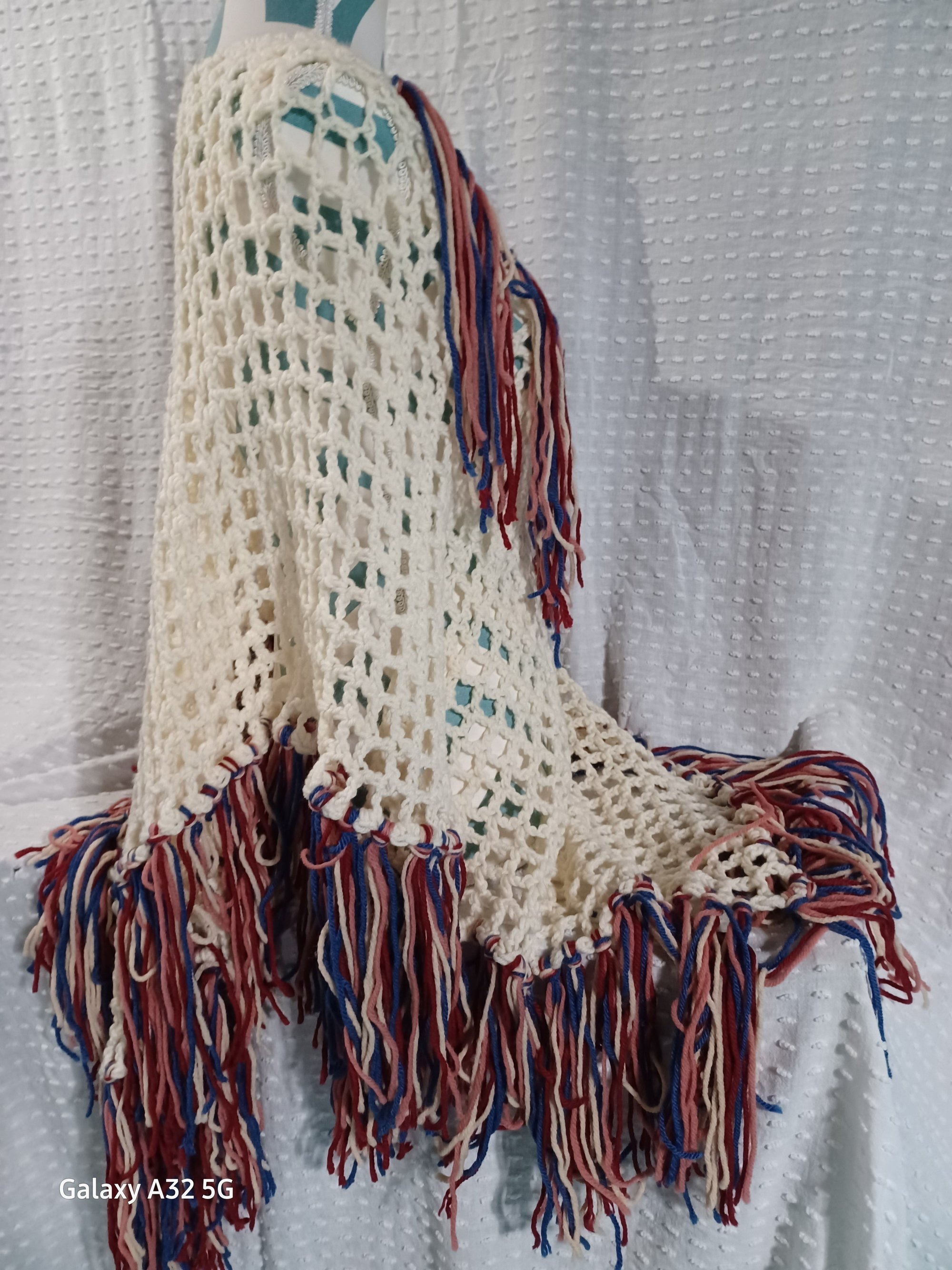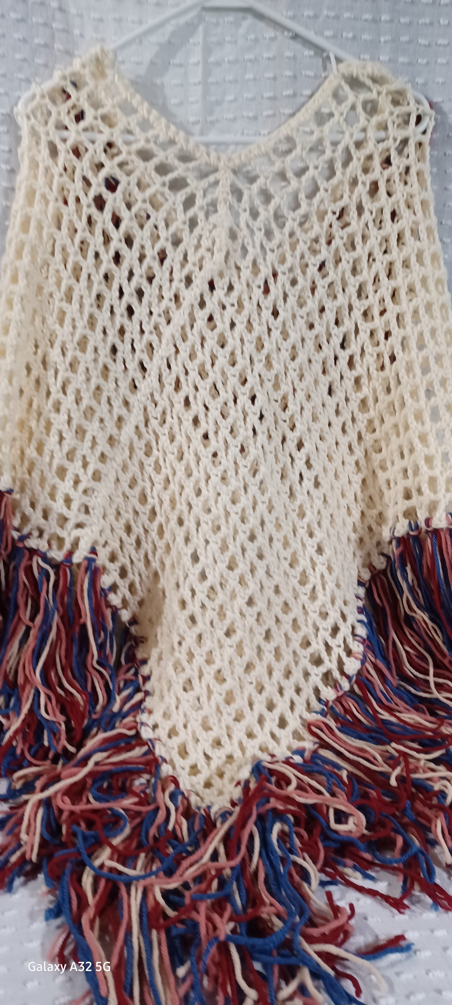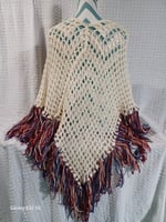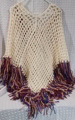 Cream Color Poncho with Fringe