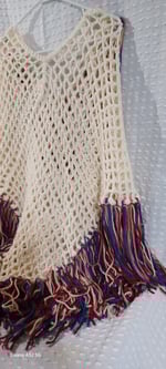 Brighten up your wardrobe with our Cream Color Poncho with Fringe! This open weave design is perfect for adding a pop of color to any outfit. The lightweight and airy material makes it a stylish and comfortable choice for any occasion. With its long, multi-color fringe, you'll be sure to make a statement!