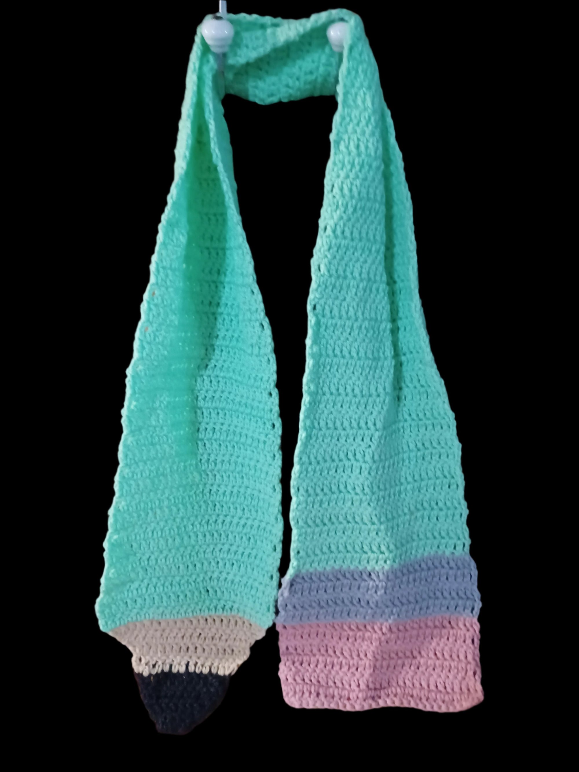 Looking for a unique gift for your favorite teacher or office worker? Our Crochet Pencil Scarf is the perfect choice! Handmade with love, this scarf adds a pop of mint green color to any outfit. Show your appreciation with this one-of-a-kind accessory.