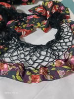 Crochet Rose & Black Skinny Infinity Scarf