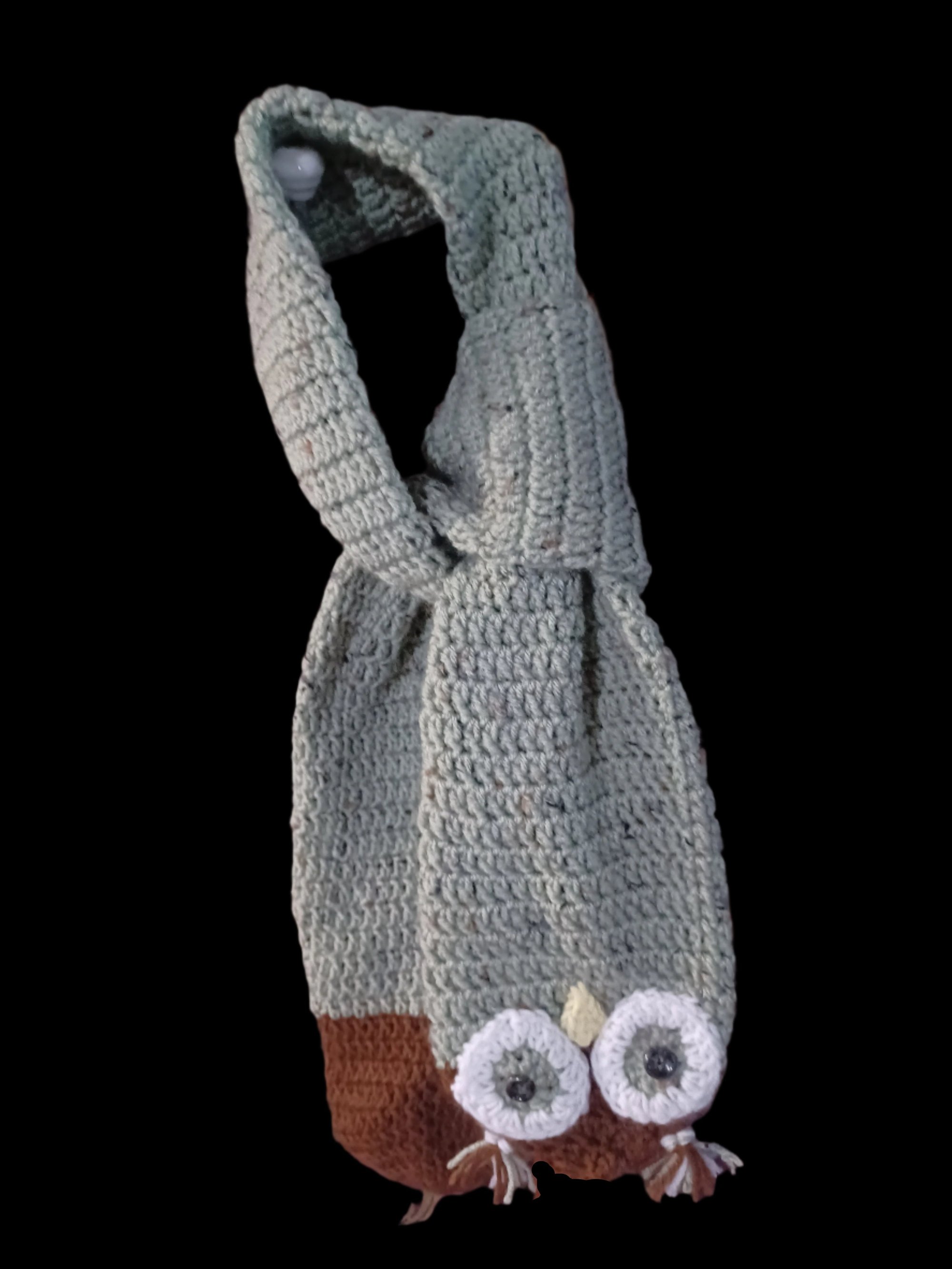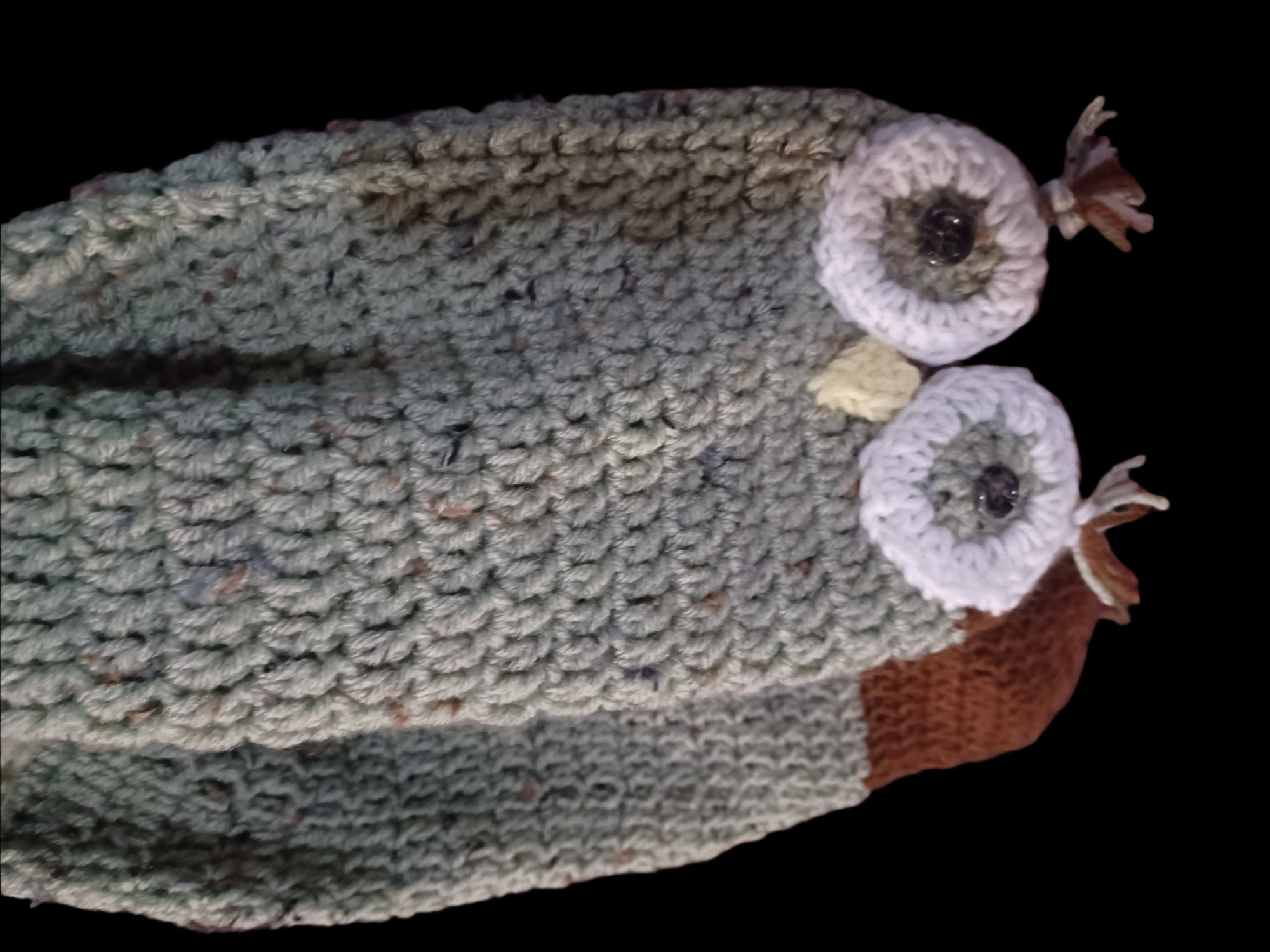 Crocheted Owl Scarf Two Layers Thick Green Specks