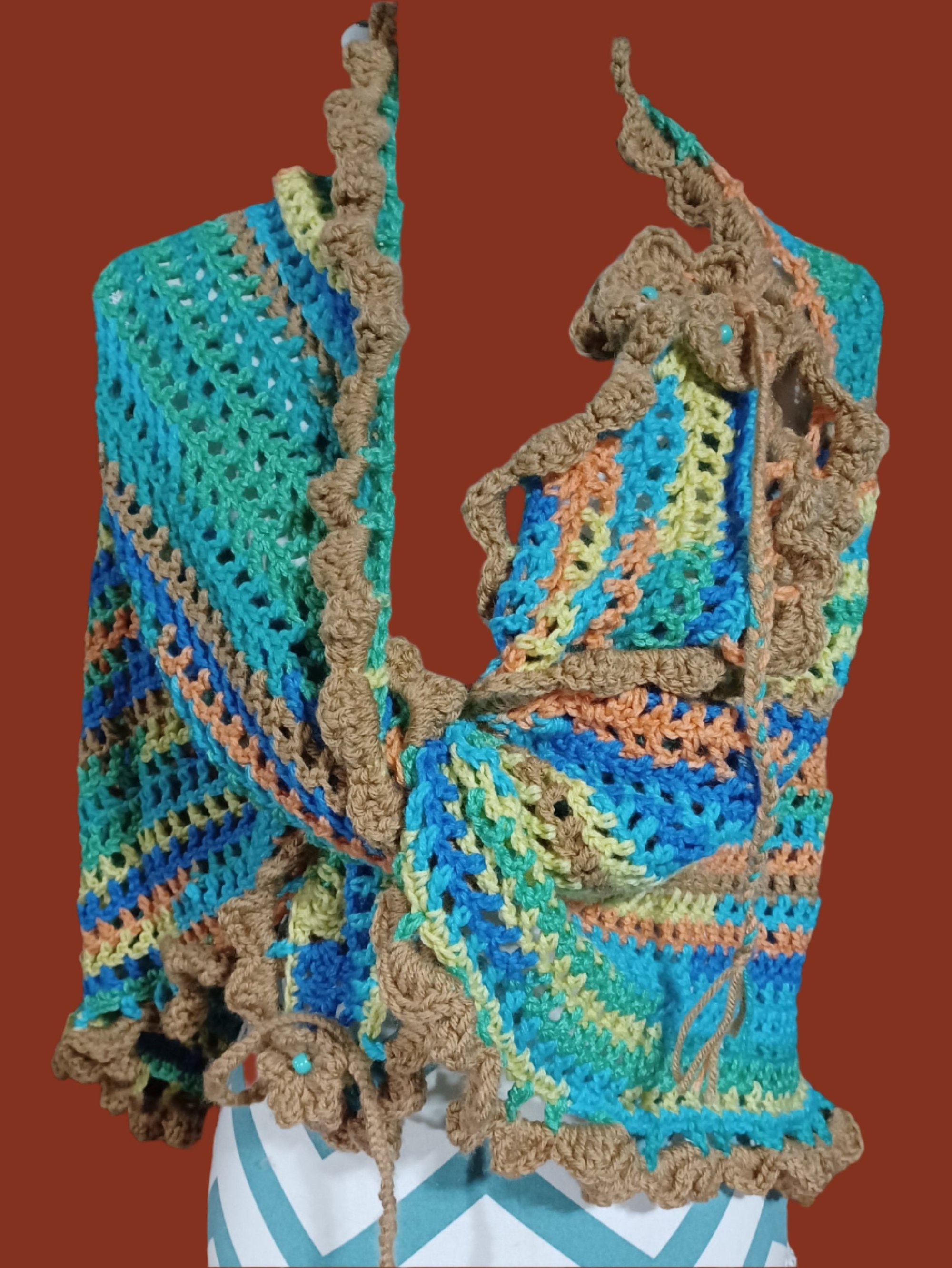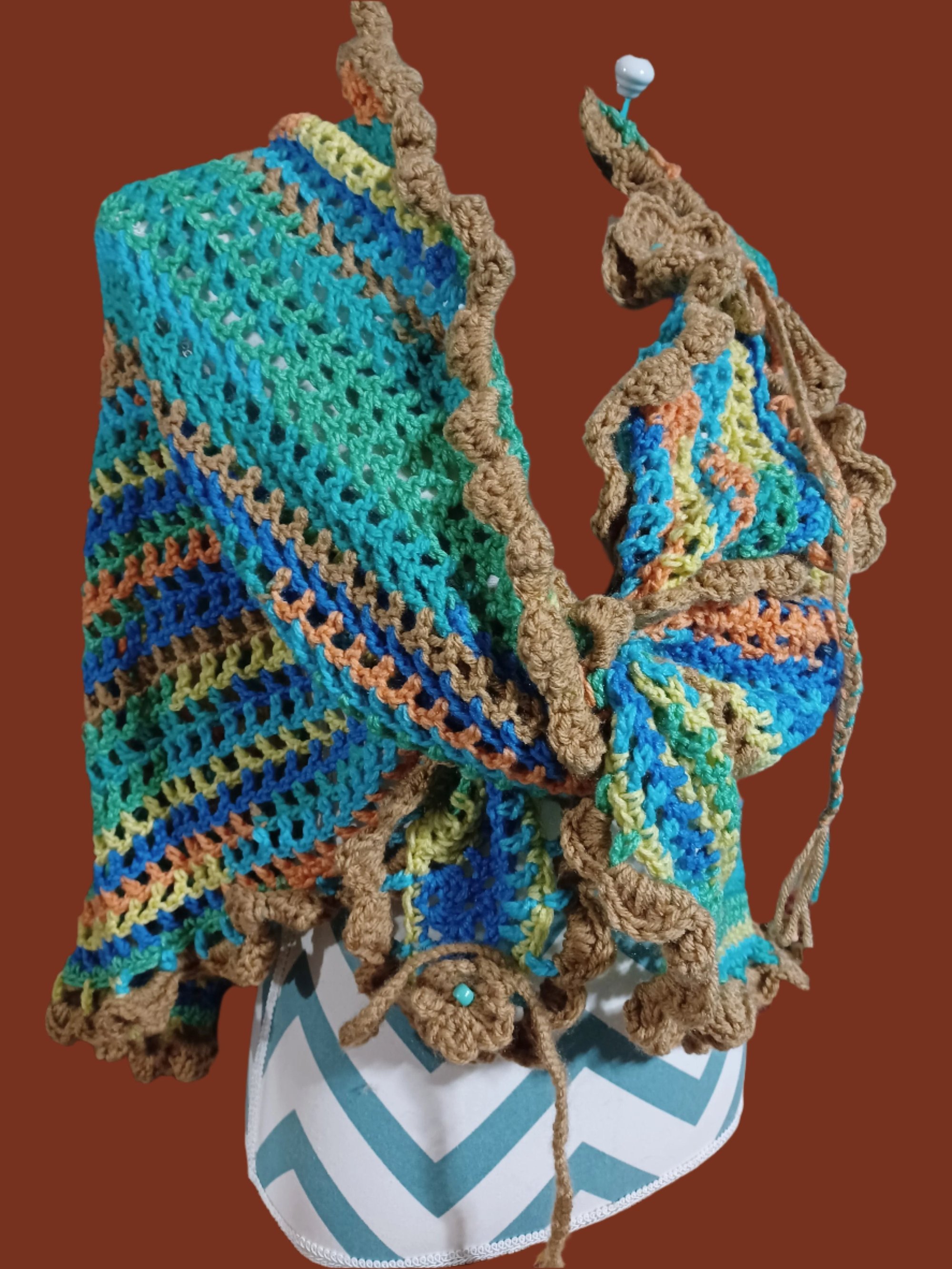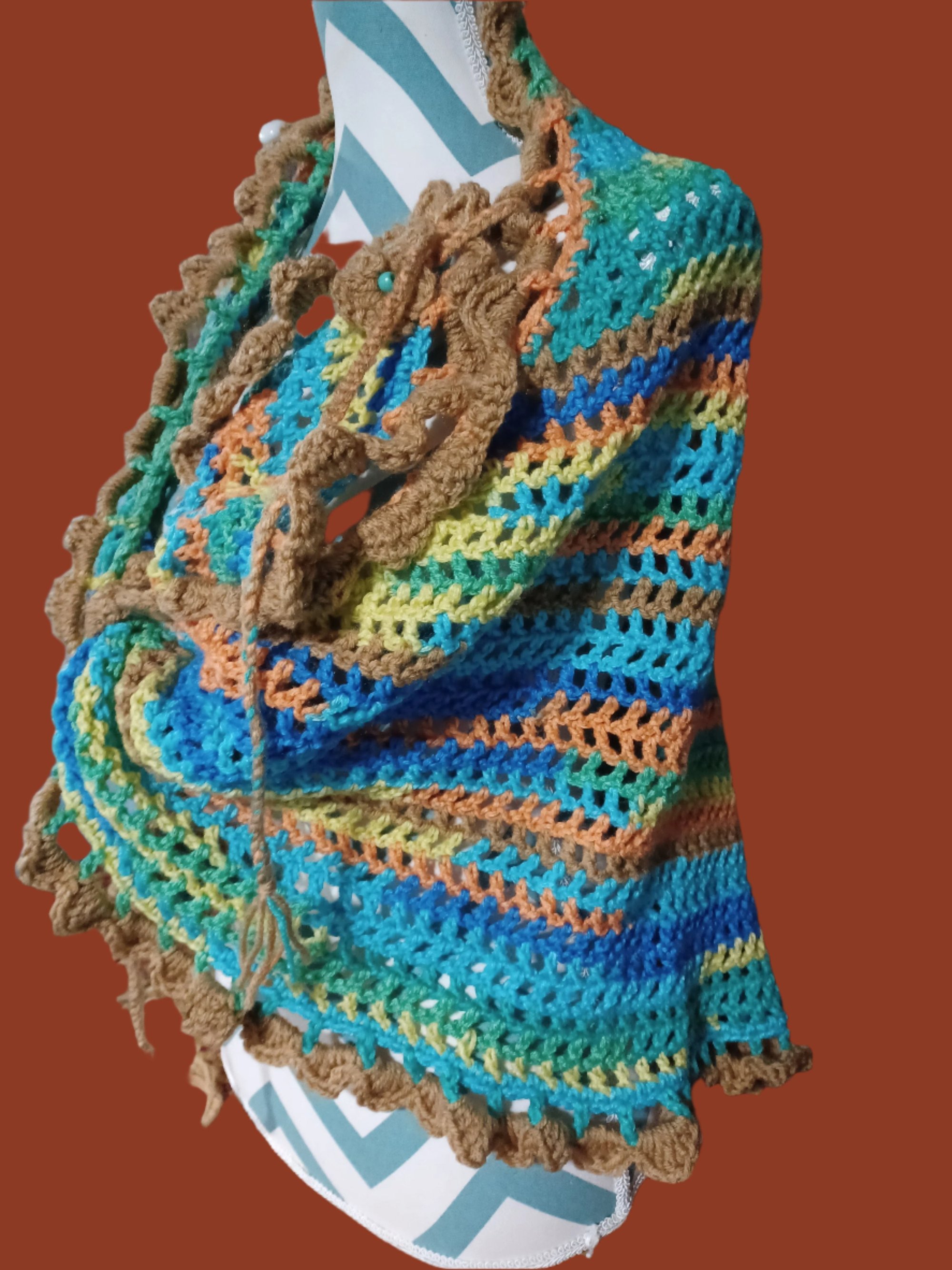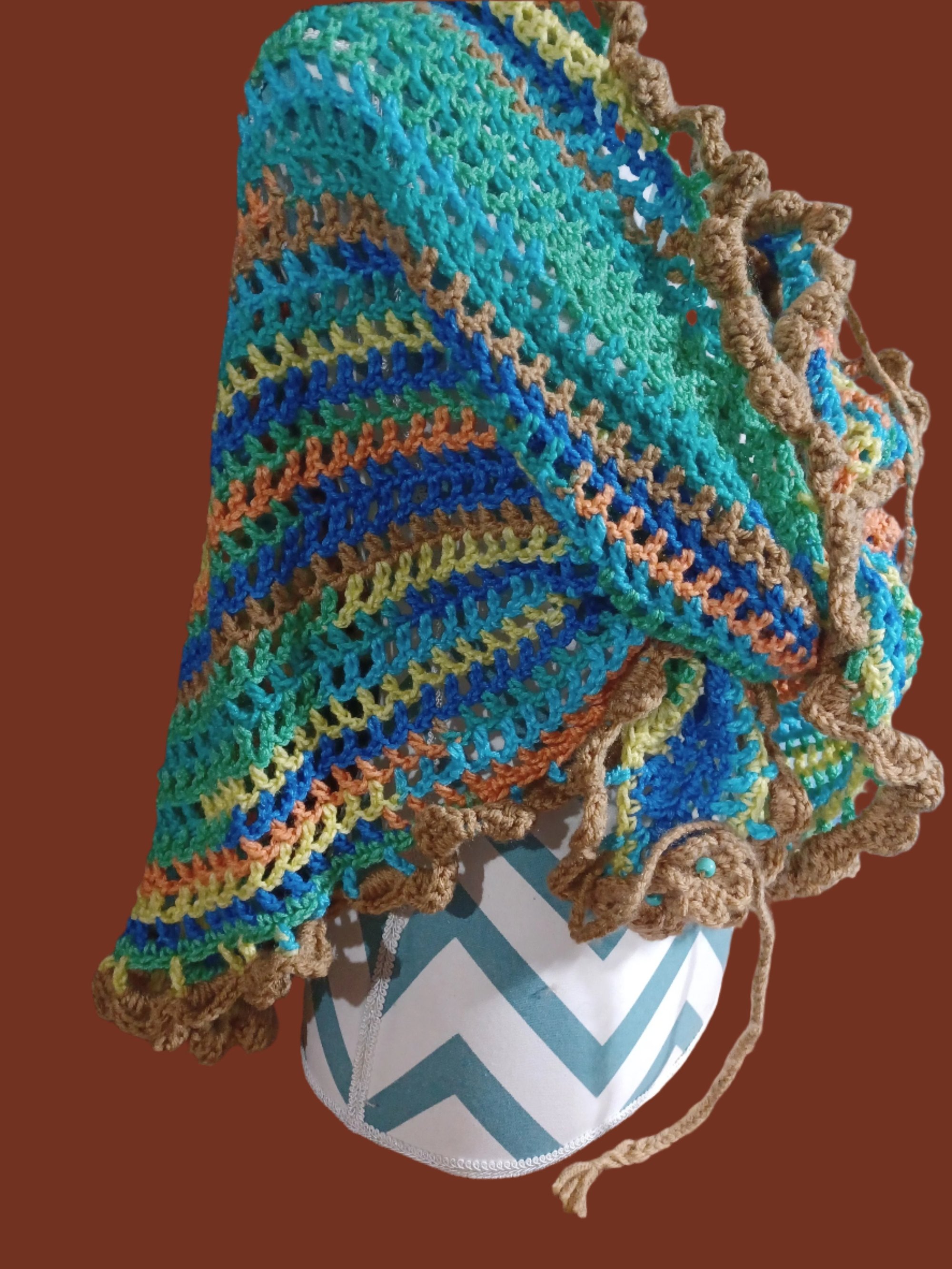 Hand Crochet Triangle Shawl/Scarf Blue Multi