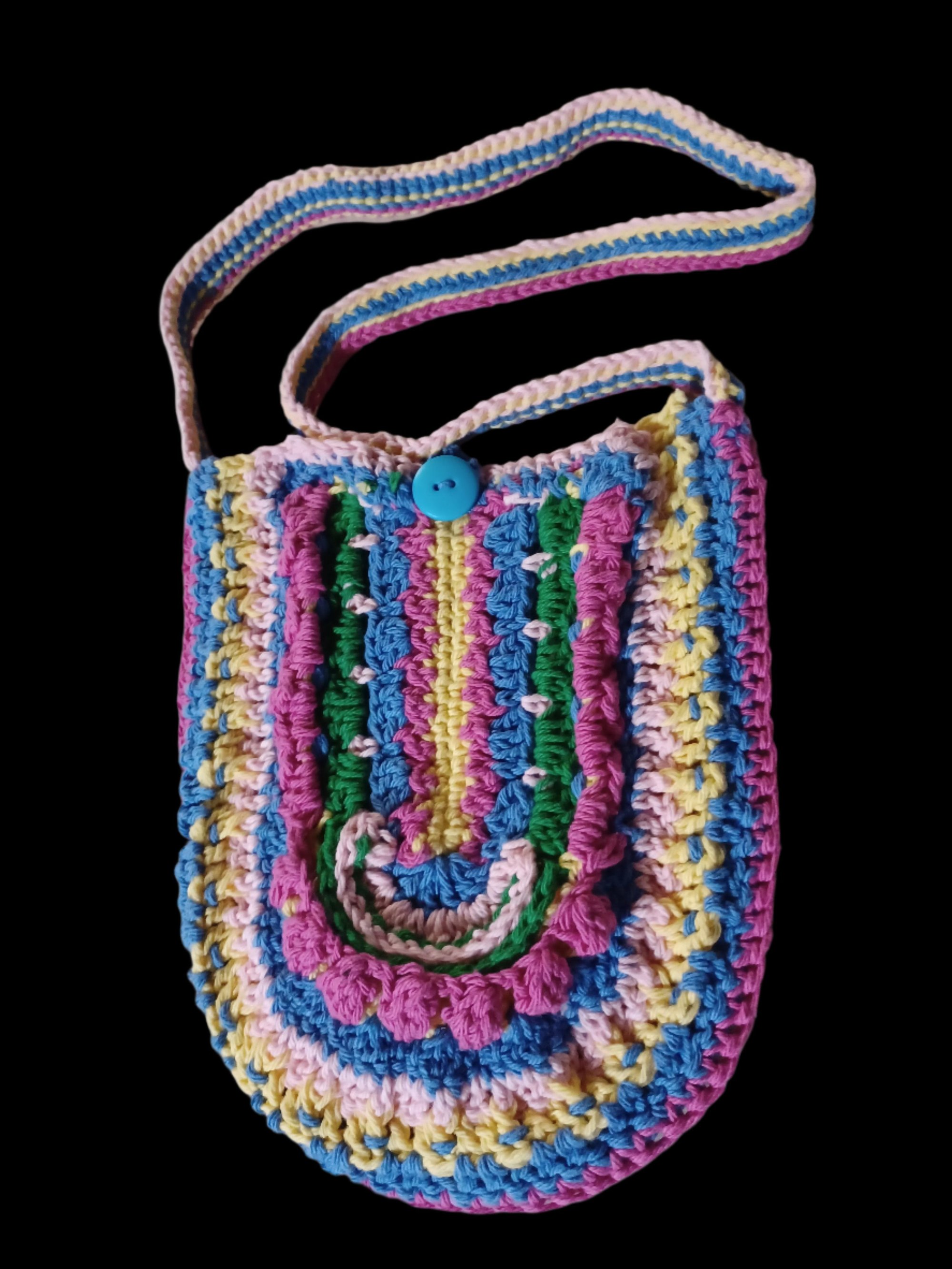 Indulge in the perfect blend of style and functionality with our handmade crochet crossbody bag! The unique mix of colors and patterns gives it a playful yet elegant look. Featuring a U-shaped design, this bag is ideal for adults and teens. Worried about maintenance? Our bag is easy to care for - simply wash and dry flat.