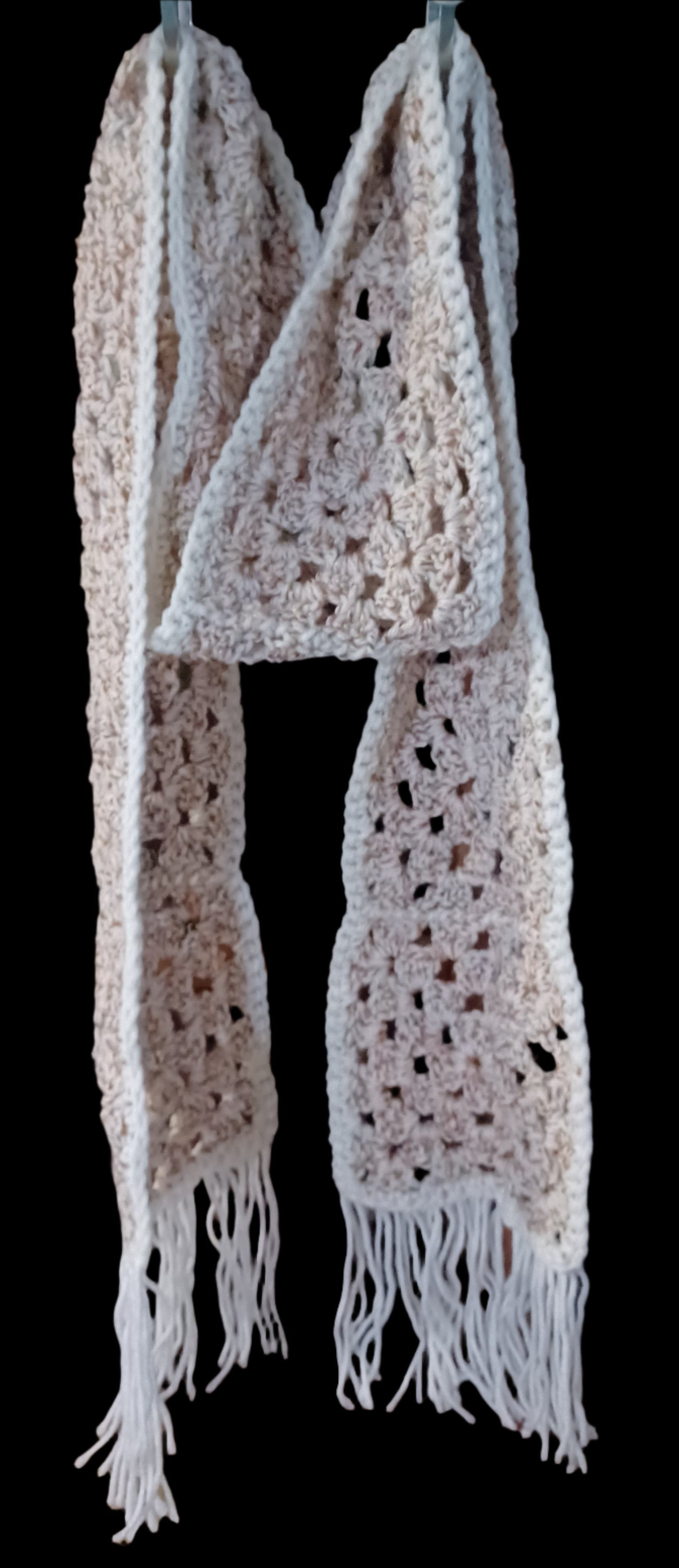 Handmade Granny Square Scarf w/Fringe Cream & Multi