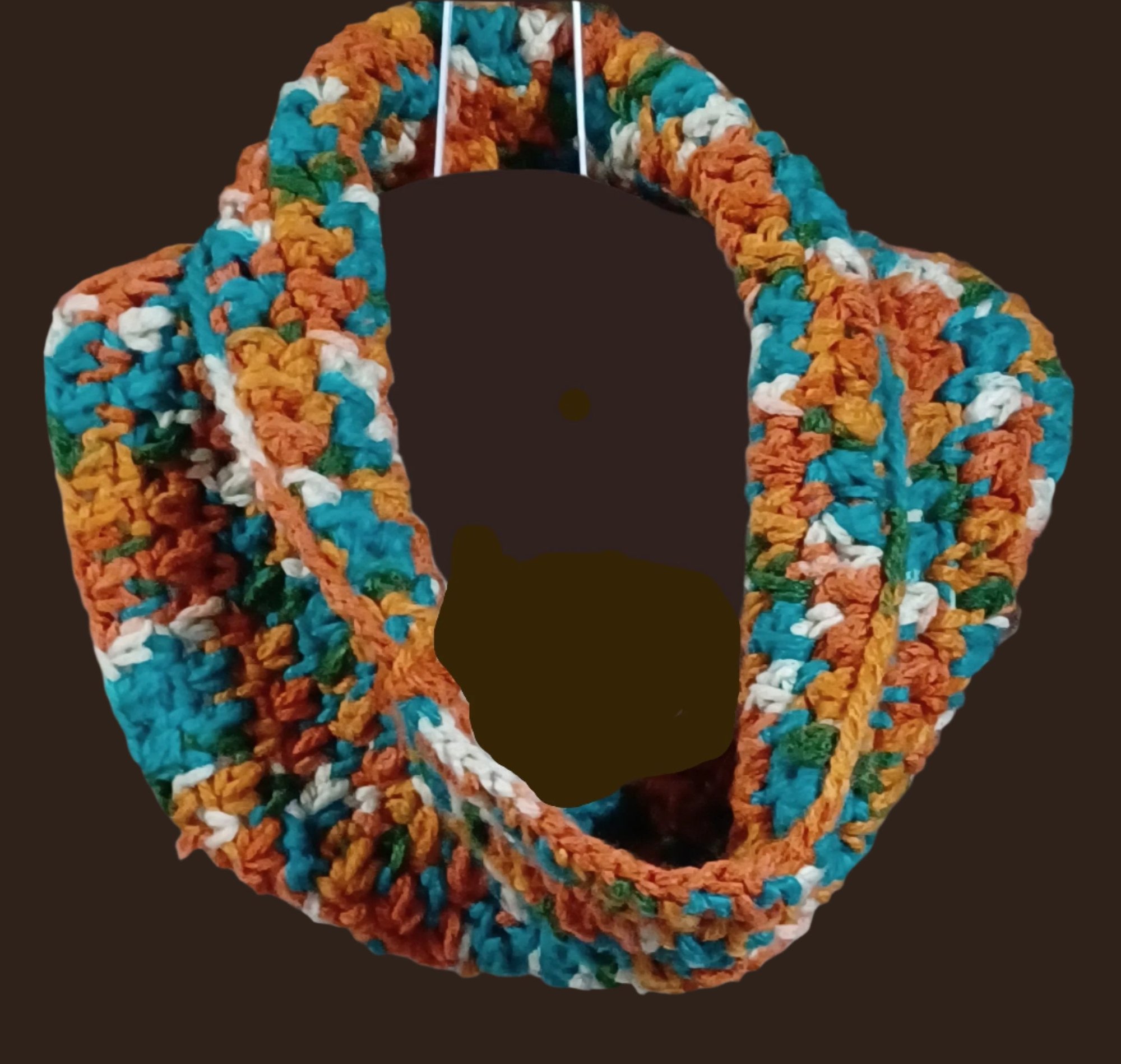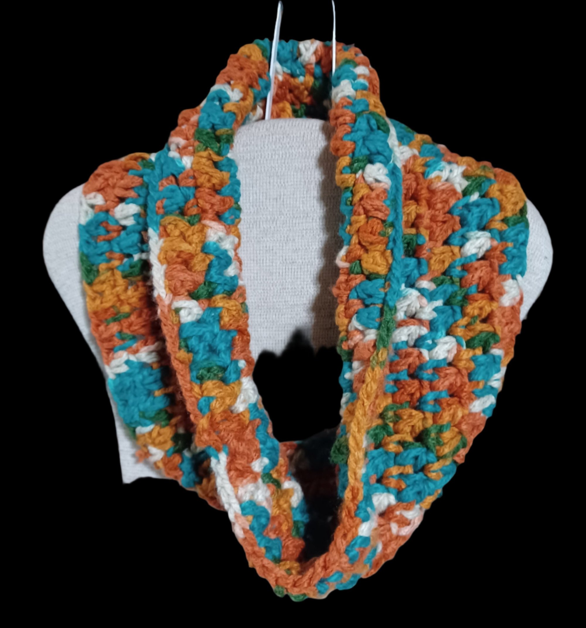 Transform your fall and winter look with our Handmade Multi Color Bulky Cowl! Featuring a length of 17 inches and a width of 7 inches, this cowl is a mix of vibrant oranges and rich teal. Elevate your style and stay warm with this must-have accessory.
