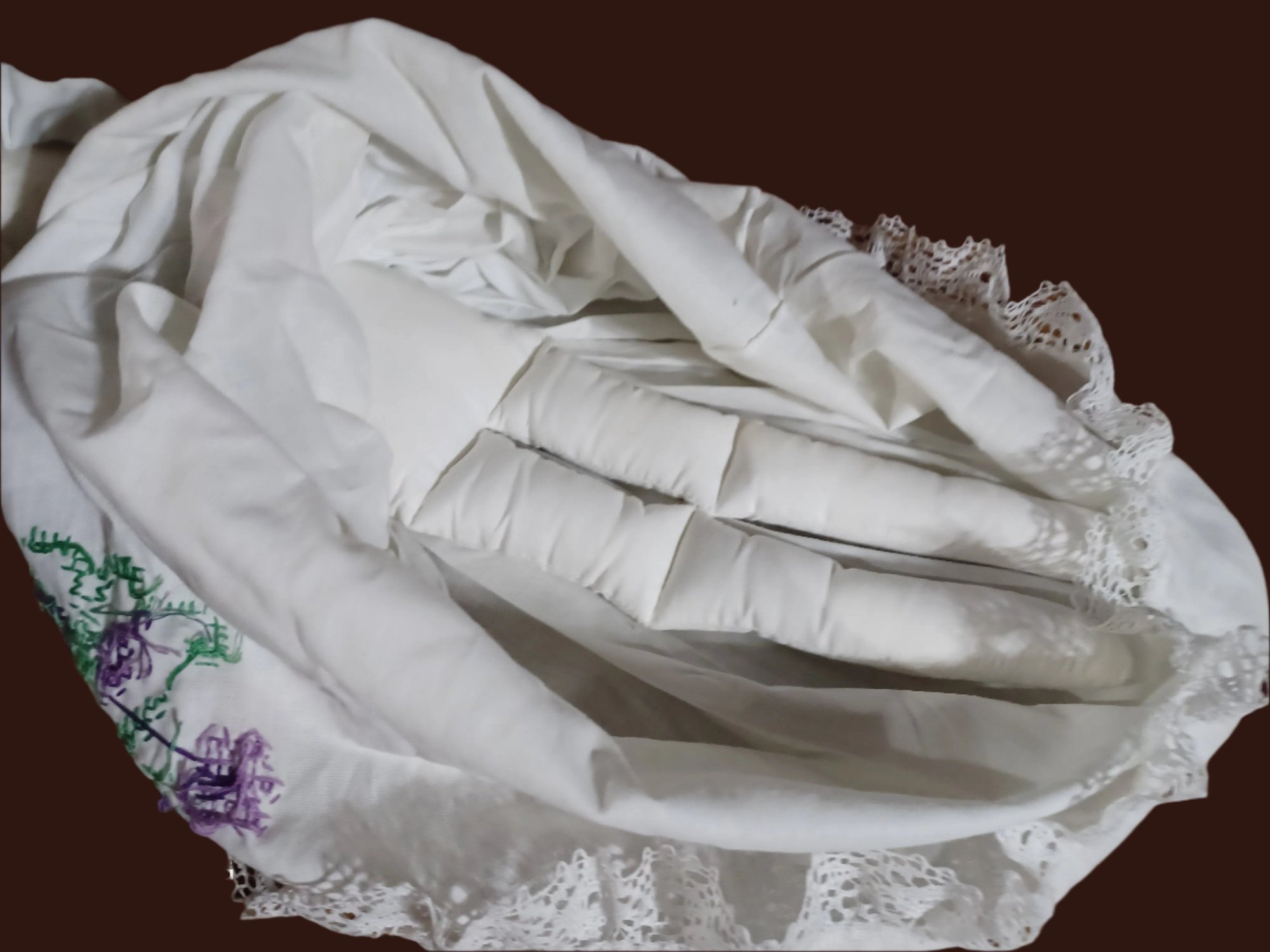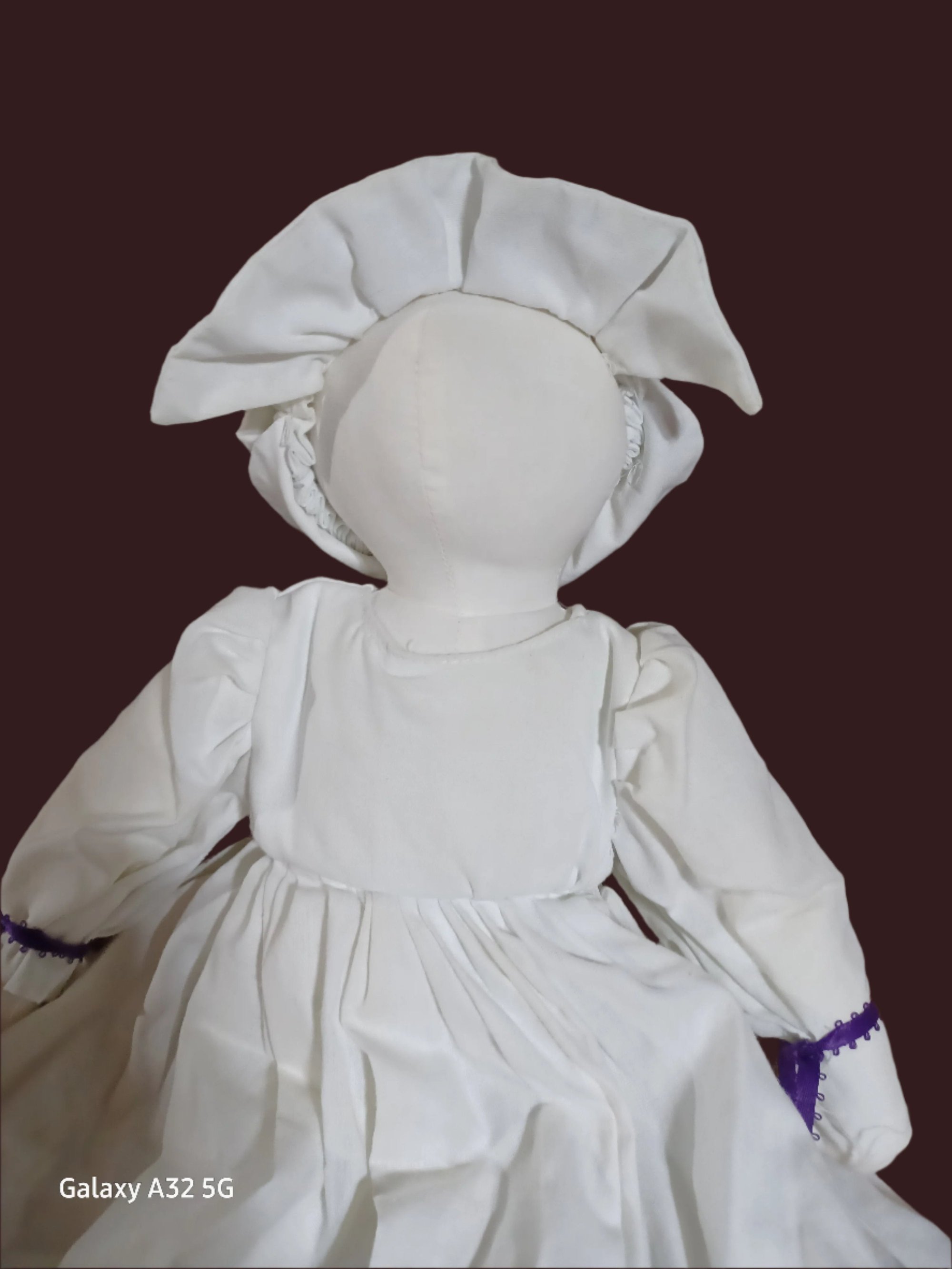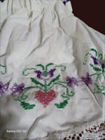 Indulge in the beauty of this handmade pillowcase doll! Measuring 23 inches tall, she boasts a full stuffed body and a stunning skirt embroidered with hearts and purple flowers. Her 18 inch wide skirt adds a touch of elegance to any room. Own her today and experience the magic she brings!