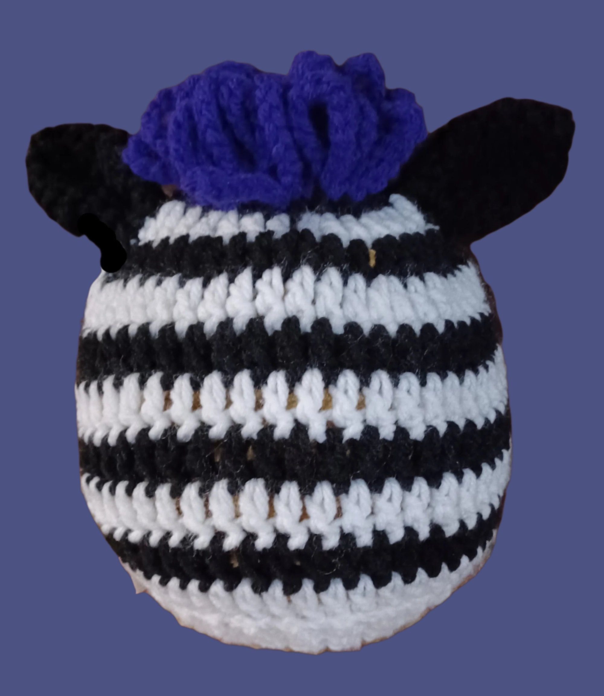 Keep your little one cozy and stylish with our Handmade Striped Baby Zebra Hat! Handcrafted with a black and white striped design and a vibrant purple mane, this hat measures 8 x 7 and is perfect for any little adventurer. Stay warm and make a statement with this one-of-a-kind accessory!