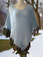 Stay cozy and stylish with our Handmade openwork Poncho w/Fringe. This lightweight crochet poncho is quick and easy to slip on and off, like a hands-free blanket. The openwork design showcases your outfit while the 5-inch fringe adds a fun touch. One size fits most. 27 Length X 30 Wide