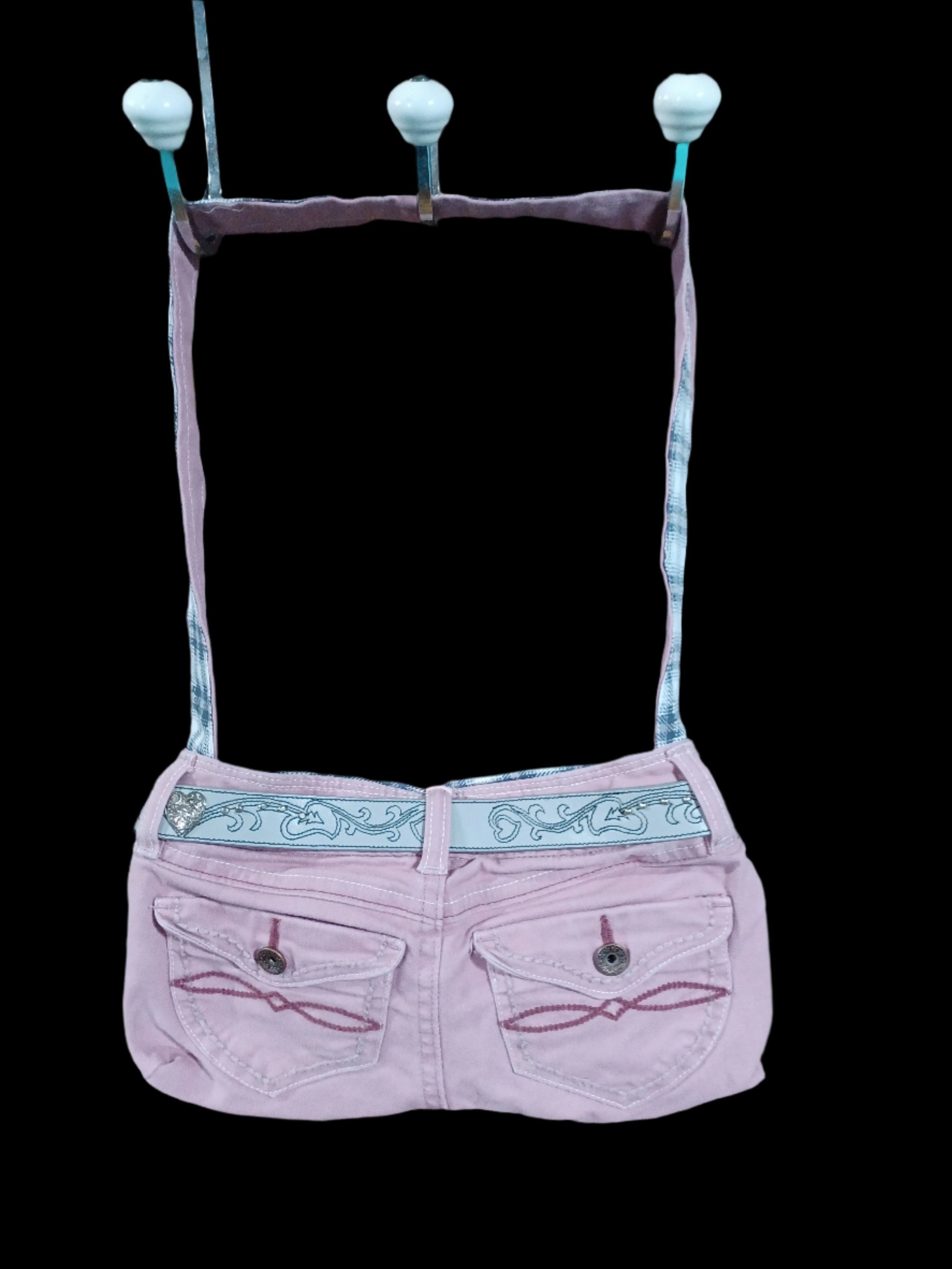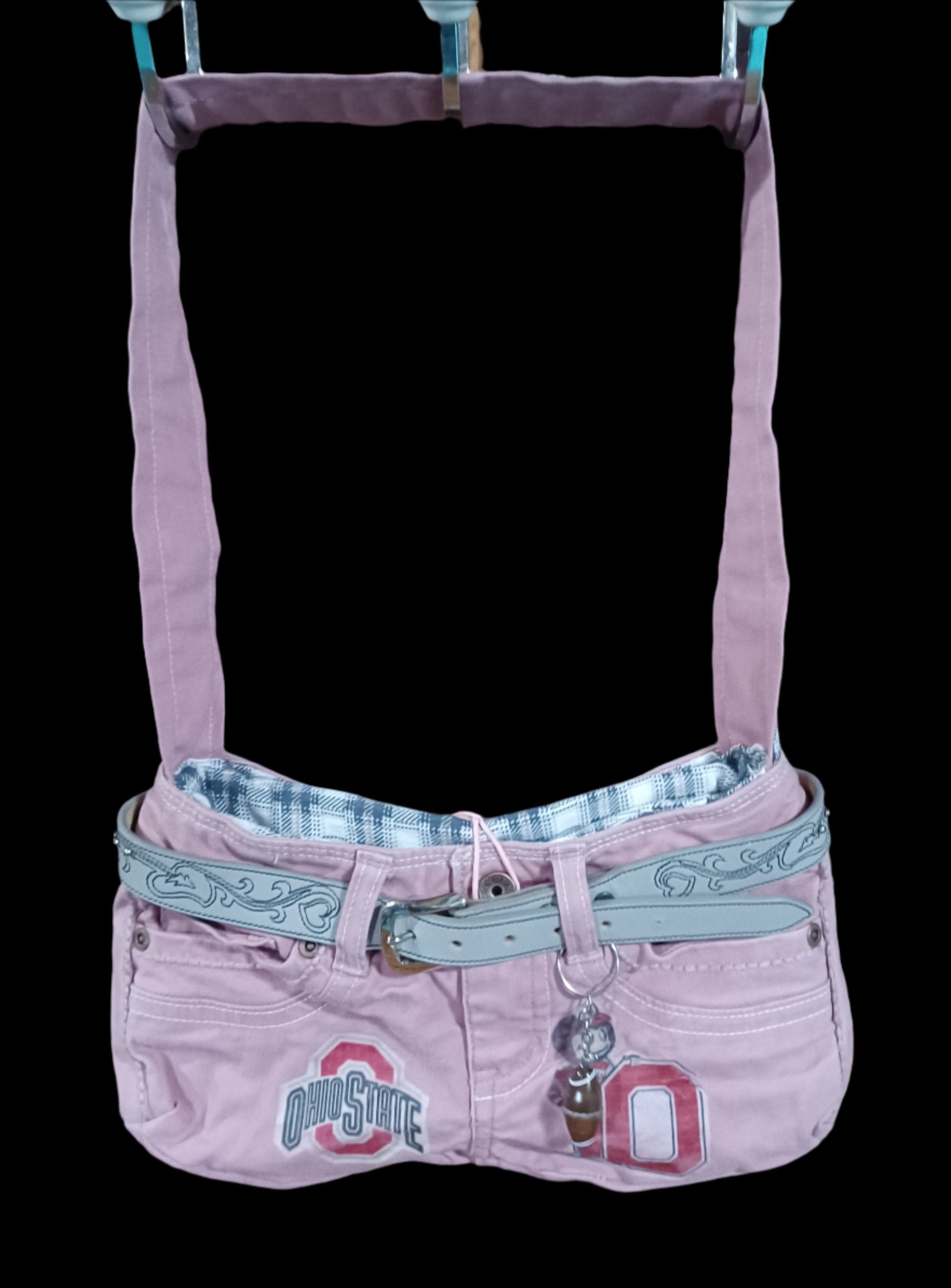 Transform your outfit with the Ohio State Remade Jean Shoulder Bag! Not only does this bag feature a removable belt and unique iron on decals, but it also has usable outside pockets and a secret spot inside the zipper for all your essentials. Plus, it's machine washable for easy maintenance. Size 11 X 6 and Strap drop at 13 in for comfortable wearing. Upgrade your style today!