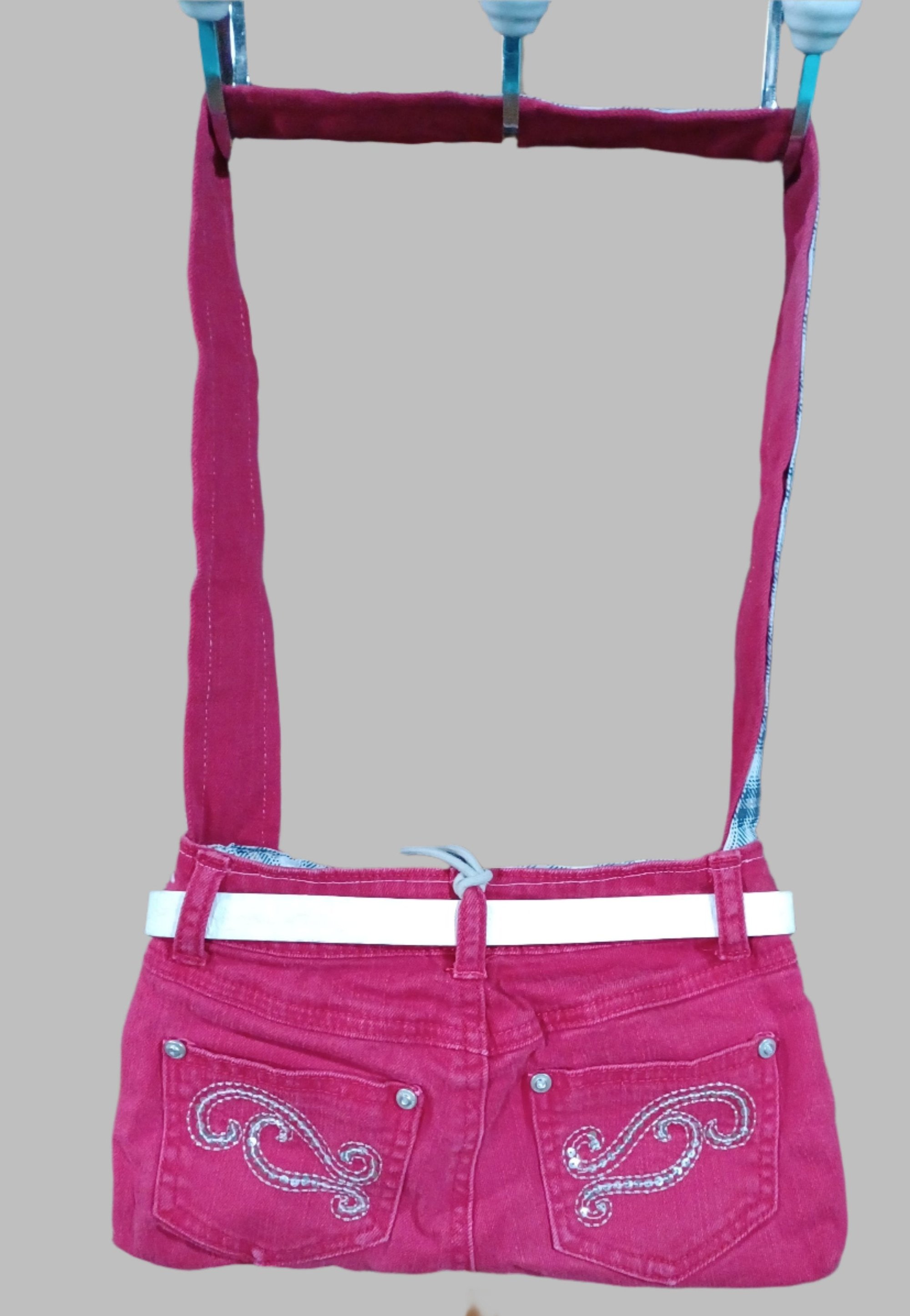 Transform your outfit with the Ohio State Remade Jean Shoulder Bag! Not only does this bag feature a removable belt and unique iron on decals, but it also has usable outside pockets and a secret spot inside the zipper for all your essentials. Plus, it's machine washable for easy maintenance. Size 11 X 7 and Strap drop at 15 in for comfortable wearing. Upgrade your style today!
