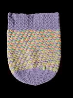 Our Handmade Sweet Pastel Colors Baby Sleep Sack is the perfect addition to your little one's nap time or snuggles. Made with love and care, it measures 16 inches by 13 inches and keeps feet toasty. The ultimate cozy companion for your bundle of joy.