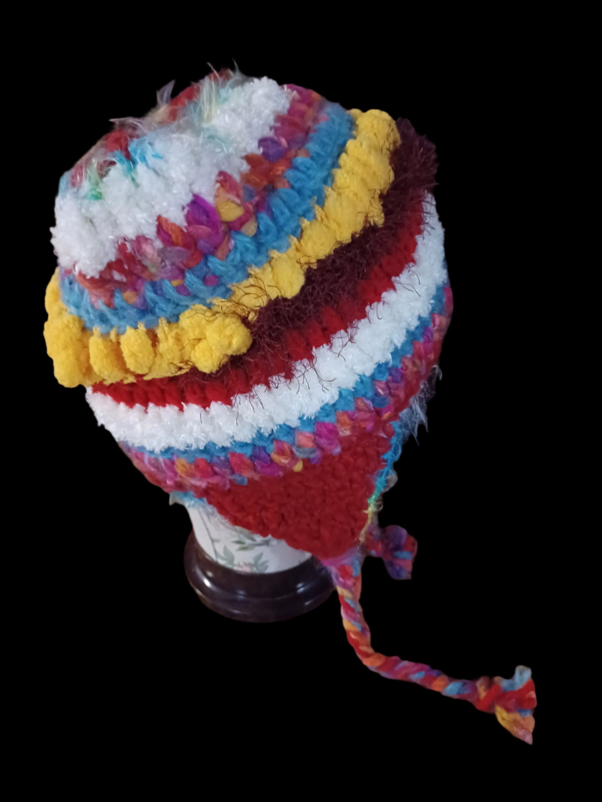 This one-of-a-kind Scrappy Hat is handcrafted with multiple colors and patterns, making it a unique and stylish accessory. The added ear tabs provide extra warmth and comfort, perfect for keeping you cozy on chilly days. Stay warm and stand out with this extra warm and fuzzy hat.