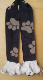Get ready to make your little one the most stylish pup in town with the Refashioned Kids Puppy Scarf! This adorable 42" X 3.5" scarf features a playful puppy design split between both ends, with cute paw prints adding an extra touch of charm. Keep them cozy and cute in this must-have accessory! (Has small safety eyes)