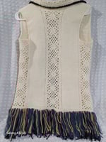 Stay stylish with our Sleeveless Cardigan! This cream-colored delight features charming flower and fringe details, making it the perfect addition to any girl's wardrobe. Stay cozy and chic in this must-have piece!