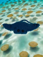 This handmade blue and white stingray stuffed toy measures 7" by 4", making it perfectly sized for the smallest hands and up. Soft and cuddly, it offers a comforting companion for children while encouraging imaginative play. Its charming design and quality craftsmanship make it a delightful gift that sparks joy and creativity.