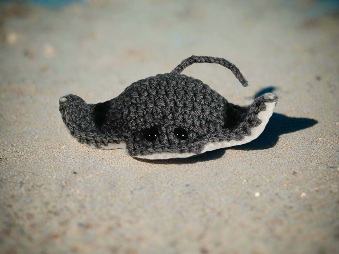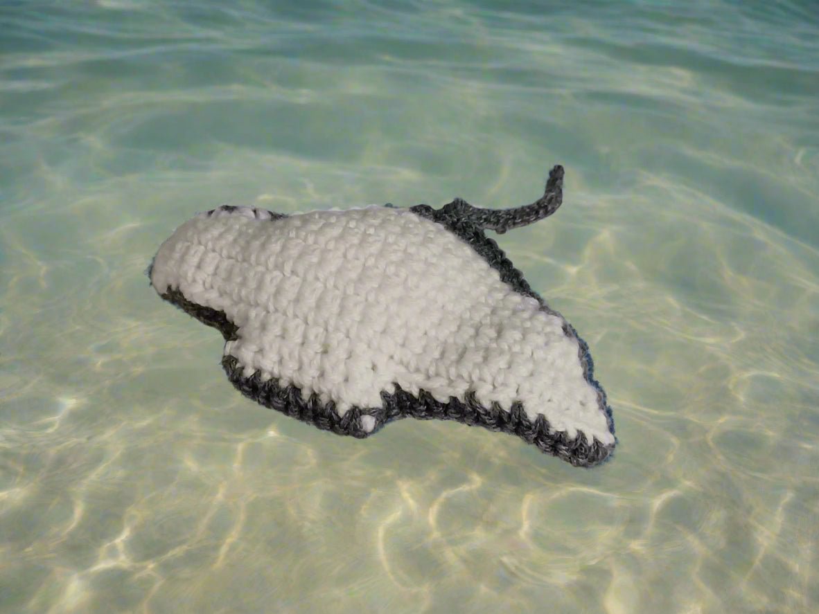 This handmade gray and white stingray stuffed toy measures 7" by 4", making it perfectly sized for the smallest hands and up. Soft and cuddly, it offers a comforting companion for children while encouraging imaginative play. Its charming design and quality craftsmanship make it a delightful gift that sparks joy and creativity.