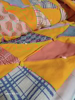 Discover a unique blend of vintage charm and cozy comfort with this twin-size quilt. Crafted from authentic vintage polyester fabric triangles on the front and backed with soft cotton, it measures a generous 68" wide by 78" long. Perfect for adding a distinctive touch to your bedroom, this one-of-a-kind quilt combines timeless style with lasting warmth. Elevate your space with a piece that tells a story and offers exceptional comfort every night.