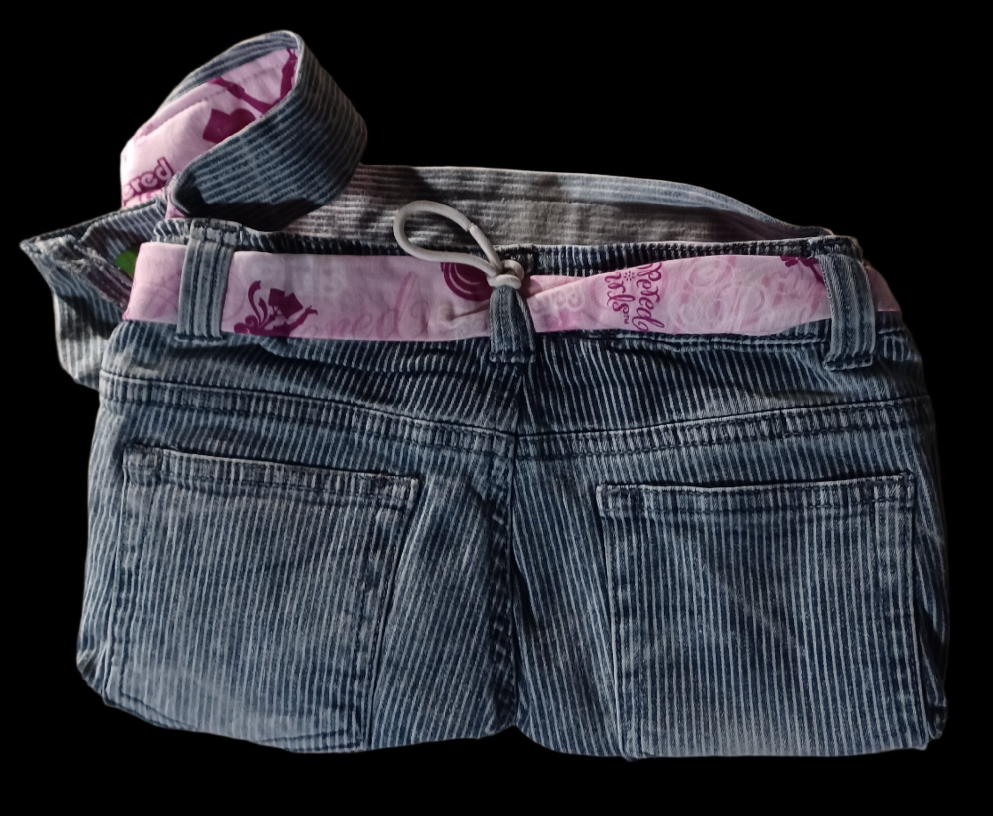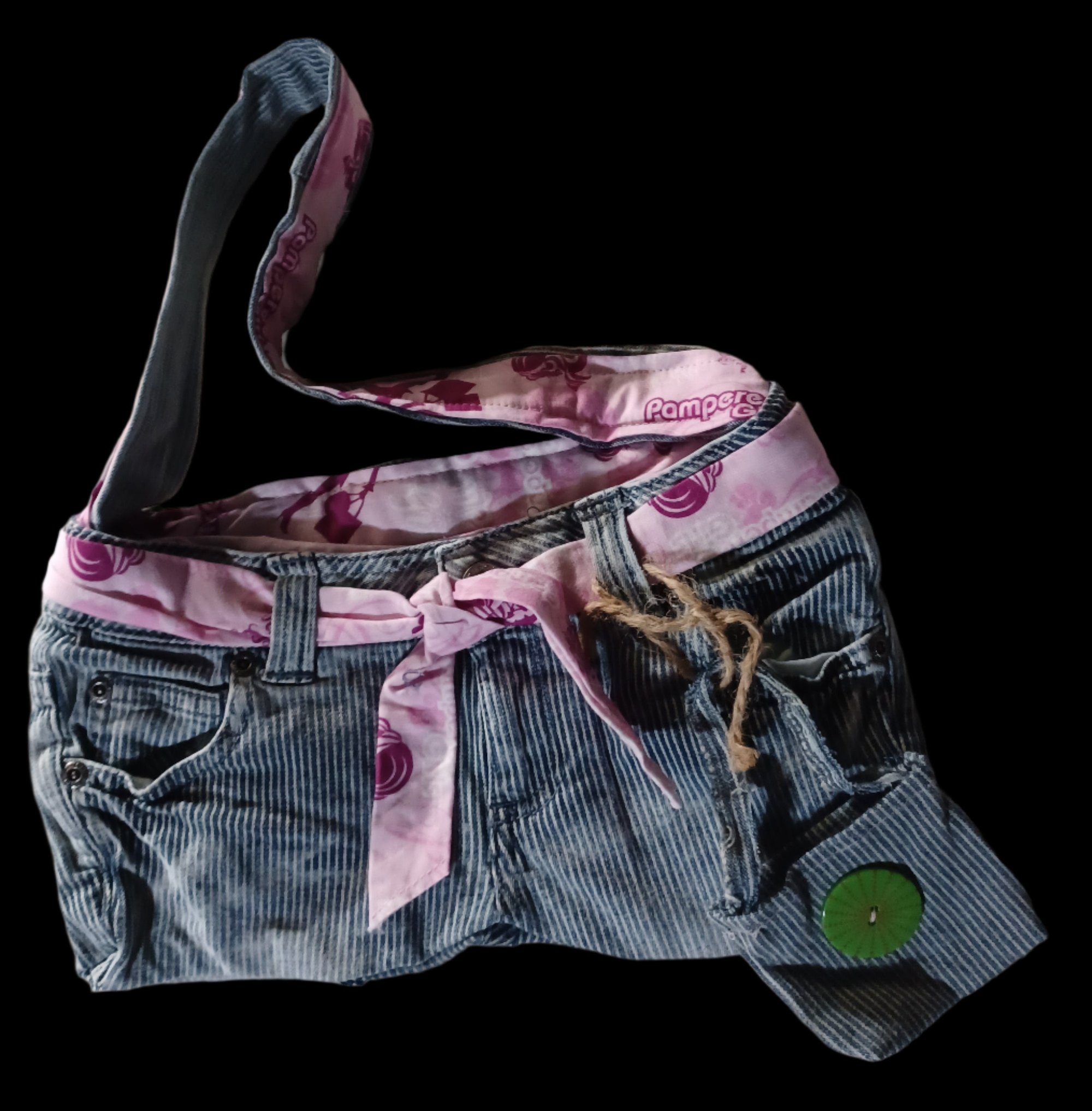 Join the sustainable fashion movement with our Girl's Remade Jean Purse & Doll Bag! Made from recycled jeans, this stylish purse is lined with new fabric and comes with a removable small bag for your favorite doll. Each bag is unique with varying inside patterns and minor flaws, adding to its charm.