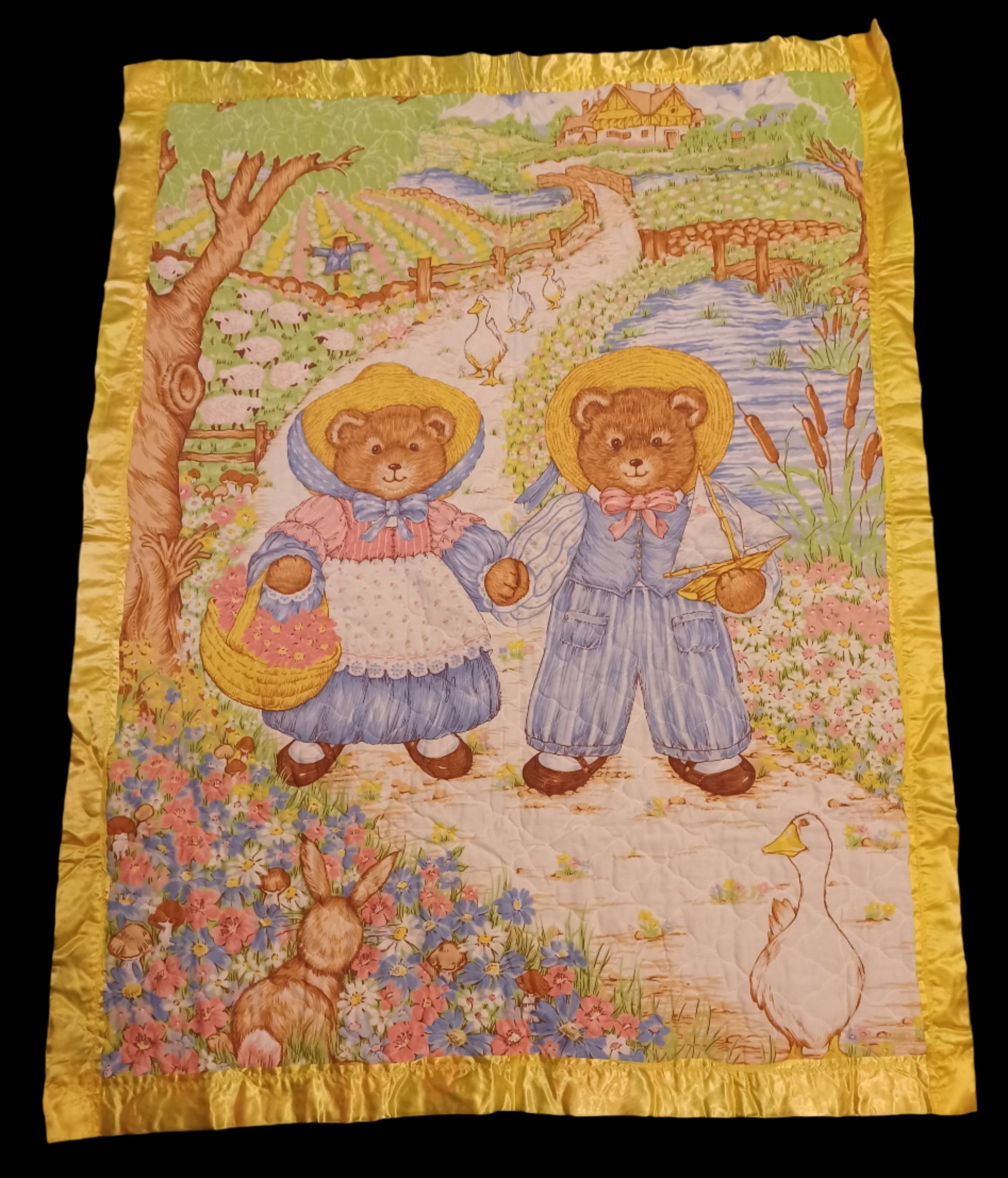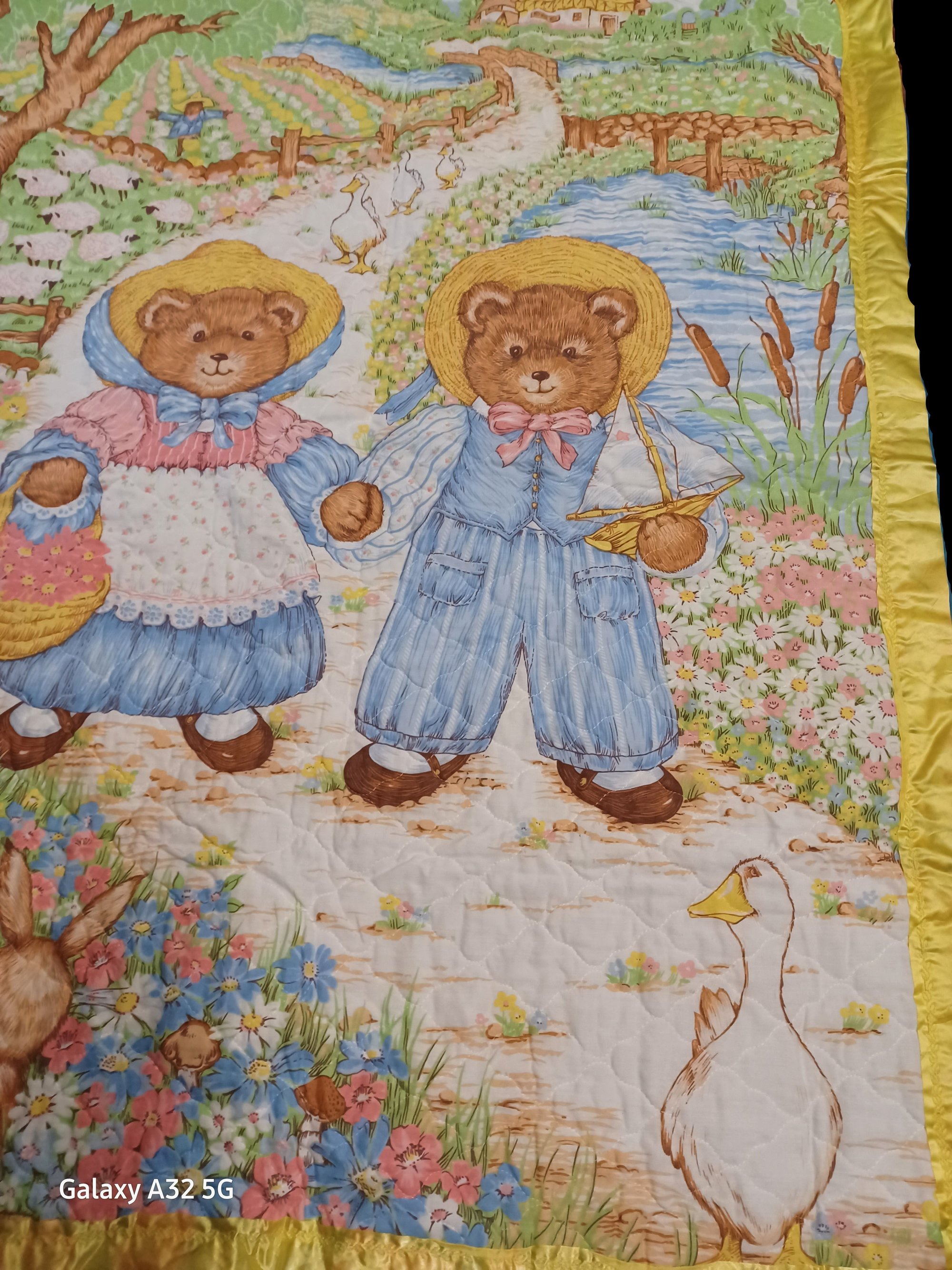 Discover the perfect playmat/blanket for your little one with this Woodland Bears design! This lightweight, vintage piece features a charming woodland scene that will inspire their creativity and imagination. Preowned and in great condition, it's a must-have for families with young children.