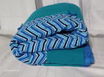 Wrap yourself in the cozy charm of the Zig Zag Blues Flannel Quilt. Featuring vibrant blue and crisp white zigzag patterns, this soft flannel quilt adds a cheerful splash of color and warmth to any space. Perfect for snuggling on chilly evenings, it brings both comfort and style to your home, inviting you to relax and unwind in its gentle embrace.